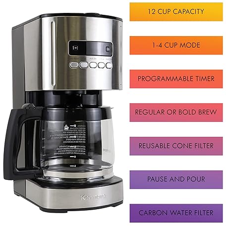 Thương hiệu Koolatron là cái tên nổi tiếng được rất nhiều khách hàng trên thế giới chọn lựa. Với kiểu dáng đẹp mắt, sang trọng, sản phẩm Kenmore Filter Coffee Machines 12-Cup Drip Coffee Makers with 1.8L Glass Pot for Ground Coffee Digital Display Programmable Timer Reusable Filter Auto Shut Off Warming Plate Kitchen Appliances Black là sự lựa chọn hoàn hảo nếu bạn đang tìm mua một món cho riêng mình.