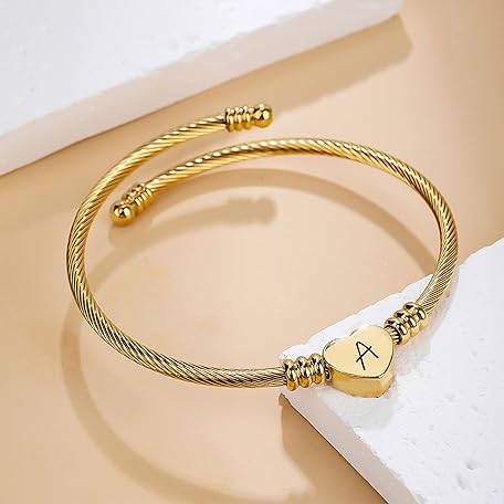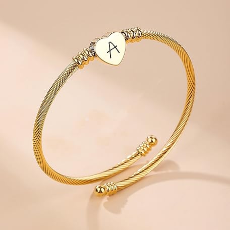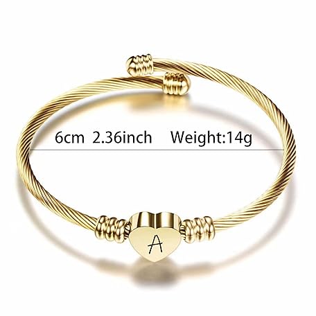 Sản phẩm KENYG Elegant Gold Love Heart 26 Initial Letter Alphabet A-Z Cuff Bracelet Open Bangle Adjustable Jewellery Gift For Mum Daughter Sisters Friends Lover Birthday Christmas đang được bán với giá ưu đãi là $12.6331 tại nước Anh.