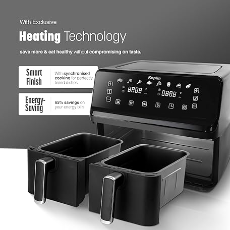 Thông tin sản phẩm KEPLIN 9L Dual Zone Air Fryer - 8in1 Cooking Functions - 2700W Energy-Saving Cooker - Extra-Large Capacity for Healthy Meals - Roast, Bake, Dehydrate, Reheat,- Family Size (9L)- 2 Years Warranty