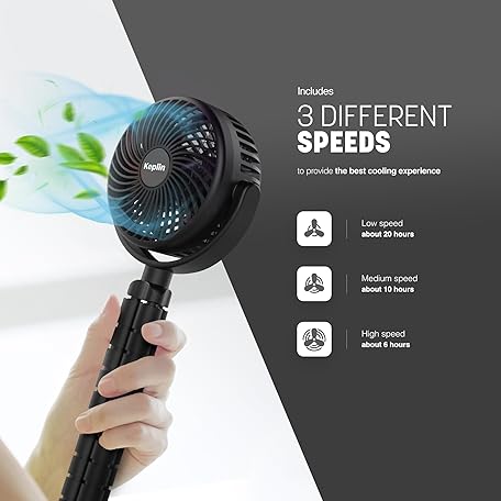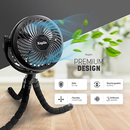 Thông tin sản phẩm KEPLIN Portable Rechargeable Pram Fan Clip, 5000mAh Battery, 3 Speeds, 360° Tripod Clips Fan for Stroller, Pushchair, Car, Desk, Baby Pram Fans Clip On Stroller, Rotatable & Detachable (Black)