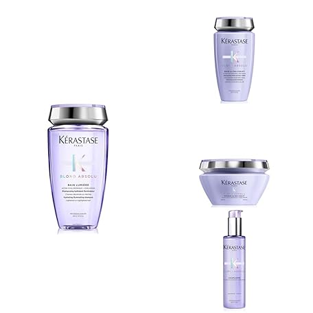 Sản phẩm KÉRASTASE Blond Absolu, Hydrating Illuminating Shampoo + Anti-Brass Purple Shampoo+ Anti-Brass Purple Hair Mask + Fortifying Heat Protecting Serum đang được bán với giá ưu đãi là $147.8694 tại nước Anh.