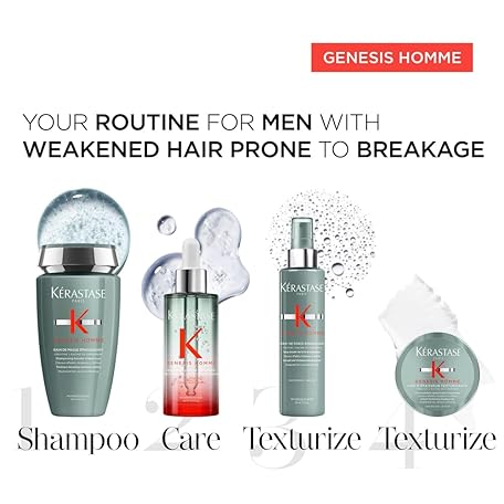 Thông tin sản phẩm KÉRASTASE Genesis Homme, Anti-Hair Loss Routine for Men with Thinning Hair, Contains Thickening Shampoo, Boosting Hair Spray, Volumising Moulding Clay & Fortifying Serum, Quad Set
