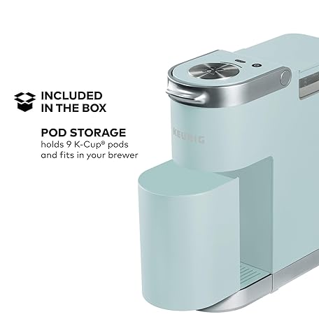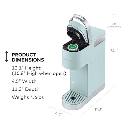 Thông tin sản phẩm Keurig K-Mini Plus Single Serve K-Cup Pod Coffee Maker, with 6 to 12oz Brew Size, Stores up to 9 K-Cup Pods, Travel Mug Friendly, Misty Green