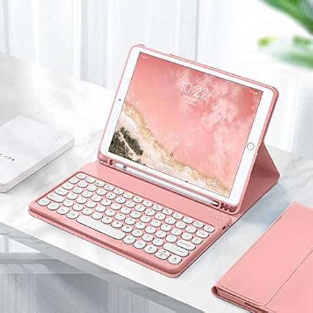 Keyboard Case for iPad 9th Generation 10.2" 8th 7th Gen, Air 3rd Gen, iPad Pro 10.5" Cute Round Key Removable BT Color Keyboard Cover with Pencil Holder (Pink)