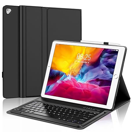 Keyboard Case for iPad Pro 12.9 inch 2015 1st Gen / 2017 2nd Gen, Magnetic Detachable Slim Wireless Bluetooth Keyboard, Precise Cutouts Folio Cover Case with Pencil Holder, Auto Sleep/Wake, Black