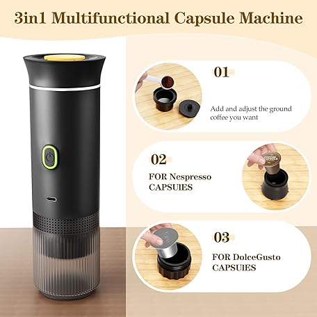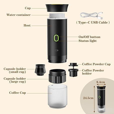 Thông tin sản phẩm Kidovin 3-in-1 Portable Espresso Coffee Machine, Portable Coffee Maker, Compatible with Big Capsule, Small Capsule and Coffee Powder, Self-Heating, Travel Coffee Maker for Camping, Office, Home, RV