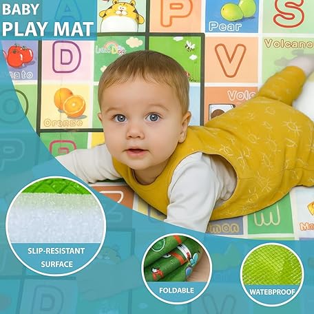 Thông tin sản phẩm Kids 2 Sided Educational Play Mat – Soft Foam Baby Crawling Mat 200x180cm | Reversible Game Carpet for Indoor & Outdoor Use, Picnic, Nursery, Floor Protection