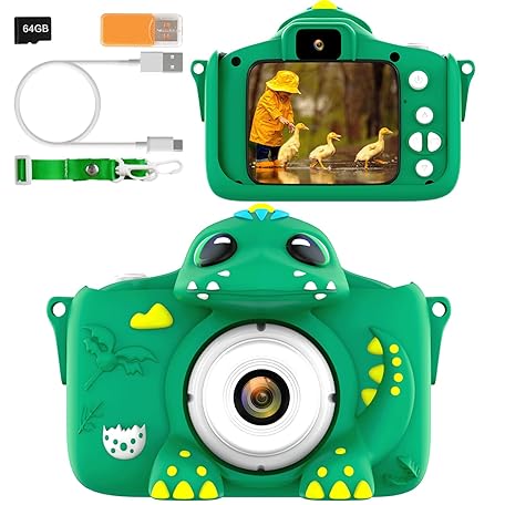 Kids Camera for Girls Boys Toddlers Childrens Age 3-8 Digital Selfie with 64GB Card for Son Daughter Grandson Granddaughter Christmas Birthday Gifts