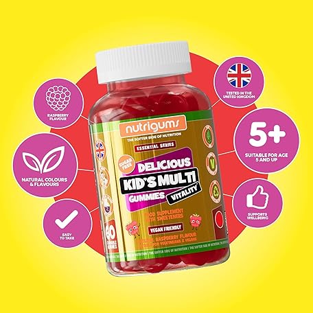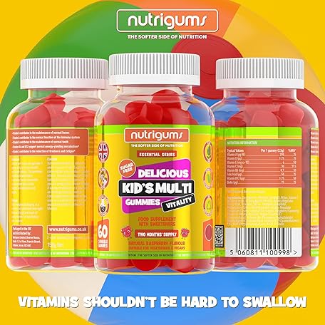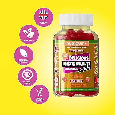 Sản phẩm Kids Multi Vitality Sugar Free Gummy | Multivitamin for Bones, Teeth, Immunity, Energy & Cognitive Function | Strawberry Flavour | 60 Vegan Gummies | Suitable for Kids Age 5+ by NUTRIGUMS® đang được bán với giá ưu đãi là $14.5515 tại nước Anh.