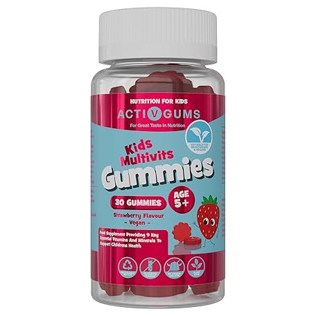 Sản phẩm Kids Multi Vitamins 30 Vegan Gummies | Strawberry Flavour | Pouch with 9 Essential Vitamins A, D, E, C, B3, B6, B12, B5 & Iodine | Resealable & Recyclable | Suitable for Kids Age 5+ by ActivGums® đang được bán với giá ưu đãi là $12.9601 tại nước Anh.