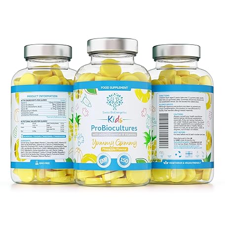 Thương hiệu swiss bioenergetics là cái tên nổi tiếng được rất nhiều khách hàng trên thế giới chọn lựa. Với kiểu dáng đẹp mắt, sang trọng, sản phẩm Kids Probiotics/ProBiocultures Gummies - 150 Children's probiotics Multi-Strain Gummies - Natural Pineapple Flavour – with Added B & C Vitamins for Immune Support - 5 Month Supply – UK Made là sự lựa chọn hoàn hảo nếu bạn đang tìm mua một món cho riêng mình.