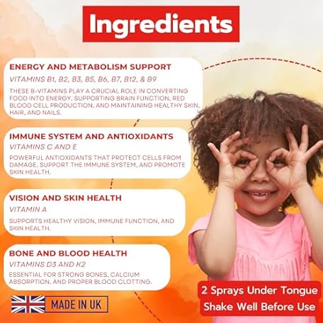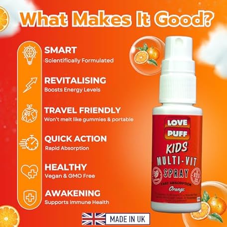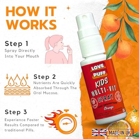 Sản phẩm Kids Vitamin D Spray for Energy and Immune Support | Fast-Absorbing 13 Essential Minerals, B, C, E, A and Vitamin D3 and K2 | Kids Multivitamin VIT D Spray | Orange | 21ml | LOVE PUFF đang được bán với giá ưu đãi là $11.4559 tại nước Anh.