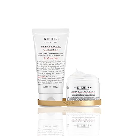 Kiehl's Ultra Facial Cream 125ml & Ultra Facial Cleanser 150ml, Gentle pH-Balanced Face Wash with Squalane, Apricot & Avocado Oil, All Skin Types