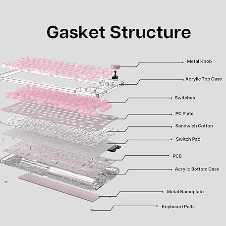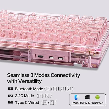 Thông tin sản phẩm KiiBoom Phantom 81 V2 75% Transparent Mechanical Gaming Keyboard, Hot Swappable Custom Gasket Keyboard with RGB Backlit, Clear Keycap, Rechargeable Battery, Triple Mode for Win/Mac (Pink)