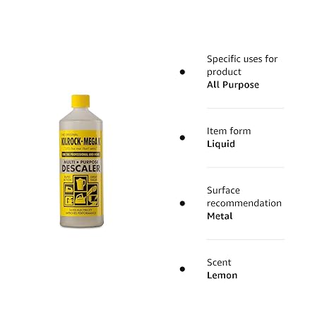 Kilrock Mega-K Multi-Purpose Descaler 2 x 1 Litre (24 Doses) - Limescale Descaling for Kettles, Shower Heads & Coffee Machines - Biodegradable and Phosphate Free