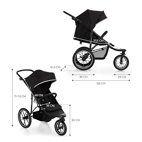 Thông tin sản phẩm Kinderkraft HELSI 2 Buggy up to 27 kg, Buggy from Birth, Stroller with Large Air Tires, Reclining Function, Adjustable Parent Handle, Foldable, Underseat Basket, Black