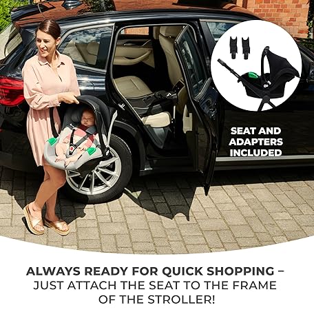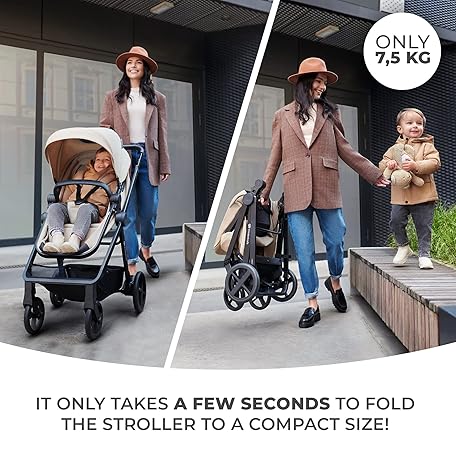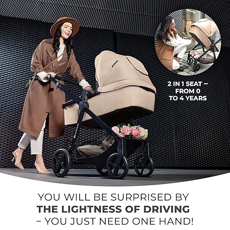 Thông tin sản phẩm Kinderkraft Newly 4 in 1, Stroller, Pushchair, Travel System, Pram, Newborn Baby, Large Hood, Accessories, Easy Folding, Included Car Seat with ISOFIX Base, from Birth up to 22 kg, Beige
