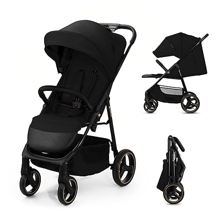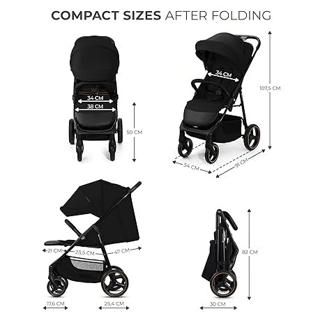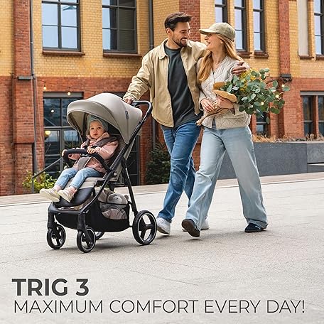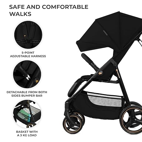 Thông tin sản phẩm Kinderkraft Trig 3 Lightweight Stroller, Baby Pushchair, Easy Folding with One Hand, All Wheels Suspension, Ajustable Hood 5-Point Safety Harness, from Birth up to 25kg, Black