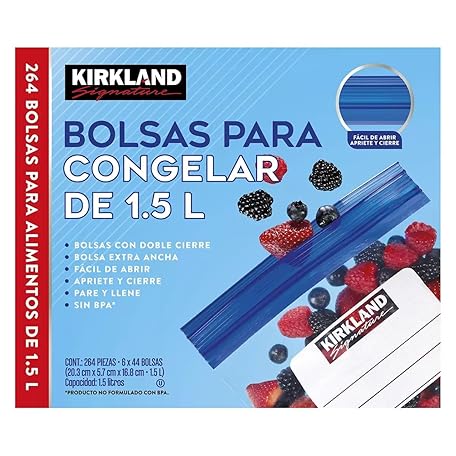 Kirkland Signature Freezer Quart Plus Food Bags Double Zipper, 264 Count