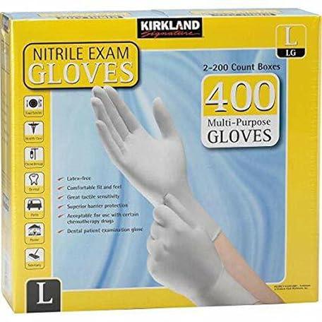 Kirkland Signature Nitrile Exam Multi-Purpose Large Gloves Latex-free 200-Count , 2-Pack (Total 400-Count Gloves)