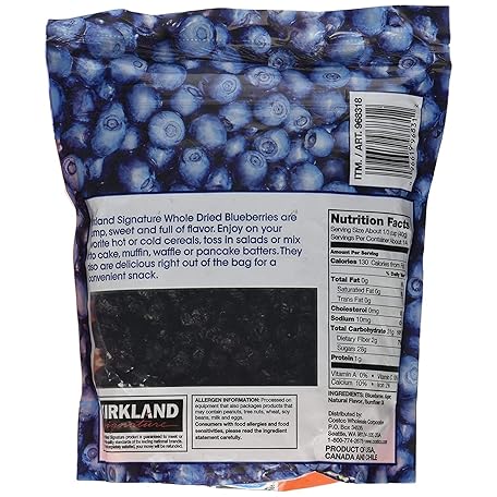 Sản phẩm KIRKLAND Signature Whole Dried Blueberries Sweet Plump Dry Fruit Pack of 567g đang được bán với giá ưu đãi là $22.127 tại nước Anh.