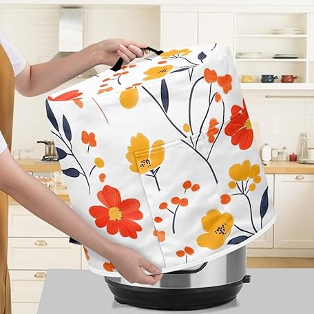 Kitchen Appliance Accessories Dust Cover for 3-6-8 Quart Instant Pot, Pressure Cooker, Air Fryer & Crock Pot,Decorative Appliance Dust Cover with Top Handle & Storage Pockets (Floral-8, 6 Quart)