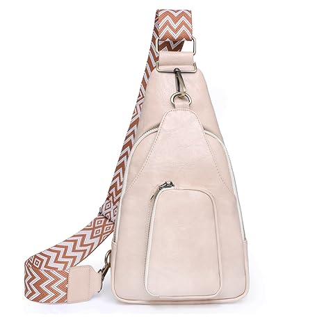 KlaOYer Sling Leather Bags For Women Crossbody Small Fanny Pack Purses Chest Bags With Guitar Strap For Gril Lady, Beige 2, L, Crossbody