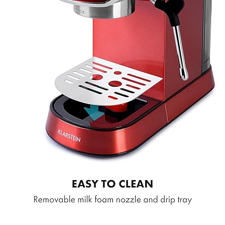 Thương hiệu KLARSTEIN là cái tên nổi tiếng được rất nhiều khách hàng trên thế giới chọn lựa. Với kiểu dáng đẹp mắt, sang trọng, sản phẩm KLARSTEIN Futura Coffee Maker - Portafilter Coffee Machine, 1450 Watts, 20 Bar, Barista Quality Espresso Machine, Thermo Block Heating System, Double Spout, Flow Stop, Milk Frothing Function, Red là sự lựa chọn hoàn hảo nếu bạn đang tìm mua một món cho riêng mình.