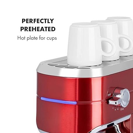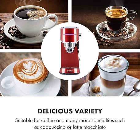 Thông tin sản phẩm KLARSTEIN Futura Coffee Maker - Portafilter Coffee Machine, 1450 Watts, 20 Bar, Barista Quality Espresso Machine, Thermo Block Heating System, Double Spout, Flow Stop, Milk Frothing Function, Red