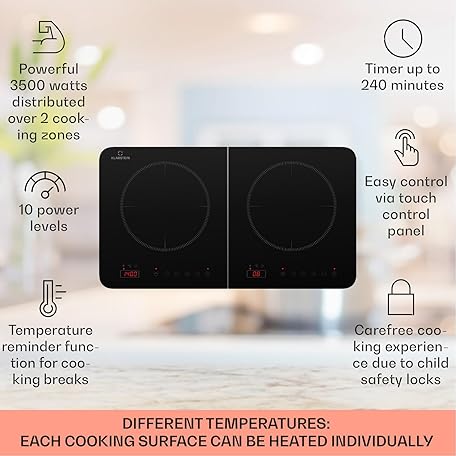 Sản phẩm Klarstein Induction Cooker, 3500W 2 Ring Induction Hob w/ 2 Modern Heater Cooktops đang được bán với giá ưu đãi là $153.6246 tại nước Anh.