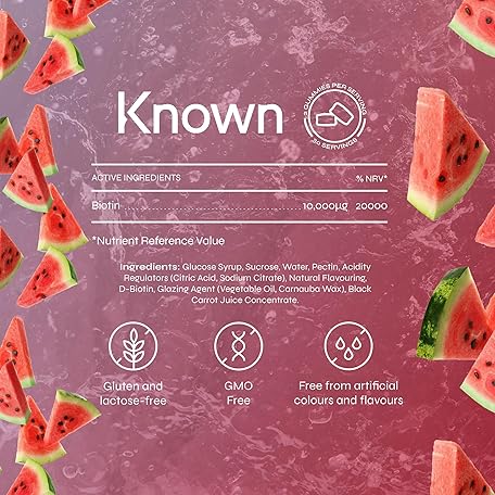 Sản phẩm Known 10000mcg High Strength Biotin Gummies – Hair Growth & Skin Support – Watermelon Flavour – Chewable Vegan Vitamin B7 Gummy Supplement – 1 Month Supply – For Men & Women đang được bán với giá ưu đãi là $16.8187 tại nước Anh.