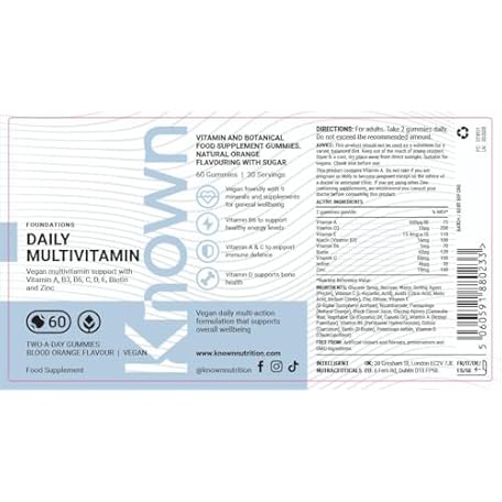 Sản phẩm Known Daily Multivitamin Gummies – Blood Orange Flavour – Vegan Gummy Supplement – Vitamin A, C, D, E, B6, Biotin, Zinc, Iodine – Immune Health, Energy, Wellbeing – 1 Month Supply – for Men & Women đang được bán với giá ưu đãi là $17.2874 tại nước Anh.