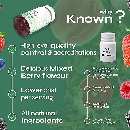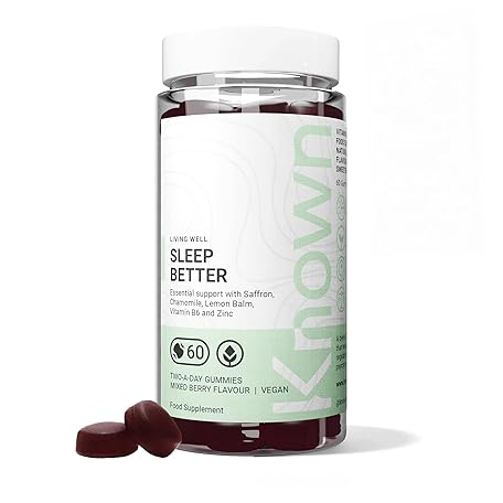 Sản phẩm Known Tasty Sleep Better Gummies - Sugar-Free - Saffron, Lemon Balm, Chamomile & B6 - Natural Mixed Berry Flavour - 60 Vegan Gummies, 1 Month Supply đang được bán với giá ưu đãi là $17.4073 tại nước Anh.