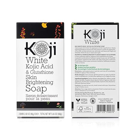 Thông tin sản phẩm Koji White Kojic Acid & Glutathione Skin Brightening Soap for Body & Face Exfoliating, Hydrating and Cleansing Bar for Reduce the Appearance of Fine Lines and Wrinkles, Vegan, 2.82 oz (2 Bars)