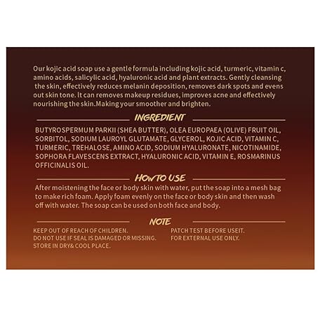 Thông tin sản phẩm Kojic Acid Soap, with Turmeric & Vitamins C, Dark Spot Remover for Face and Body, 100g x3 Moisturizing for Acne Blackheads Remover, Hyaluronic Acid for Deep Cleansing, with a Mesh Pouch