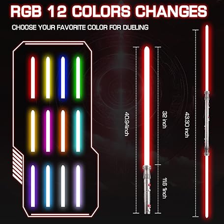 Thông tin sản phẩm Kolulere Light Saber, Heavy Dueling 2 Pack, 12 RGB Colors 16 Sound Fonts With Metal Hilt Double-Bladed Smooth Swing Motion Control 2 in 1 for Adults