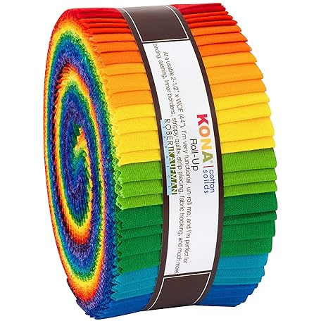 Kona Cotton Bright Rainbow Roll Up 40 2.5-inch Strips Jelly Roll Robert Kaufman