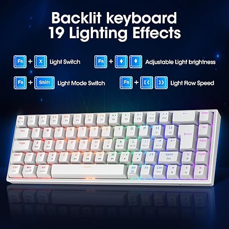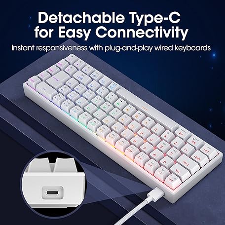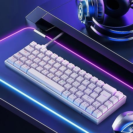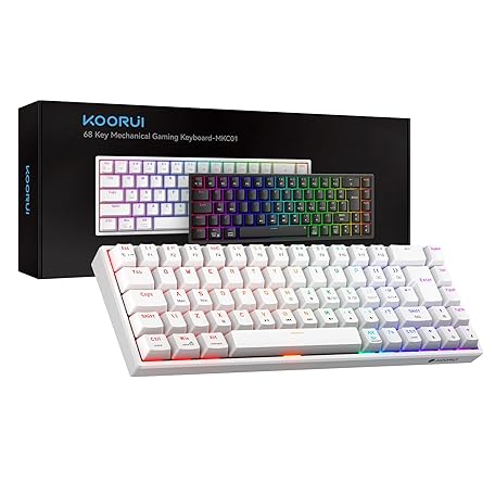 Thông tin sản phẩm KOORUI 60% Mechanical Gaming Keyboard, Mixed Colors LED Backlit Ultra-Compact 69 Keys, Mini Wired Keyboard with Red Switch for Windows Laptop PC/Mac OS/Xbox-WHITE(Red Switch)