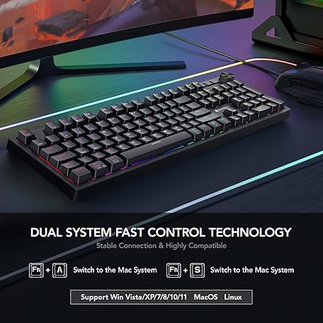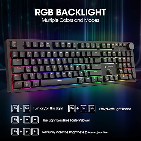Thương hiệu KOORUI là cái tên nổi tiếng được rất nhiều khách hàng trên thế giới chọn lựa. Với kiểu dáng đẹp mắt, sang trọng, sản phẩm KOORUI Gaming Keyboards, 26 RGB Backlit Mechanical Keyboard Wired 104 Keys Full Size UK Layout with Brown Switch Gamer Keyboards for Windows MacOS Linux là sự lựa chọn hoàn hảo nếu bạn đang tìm mua một món cho riêng mình.