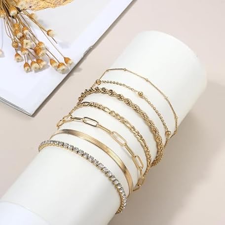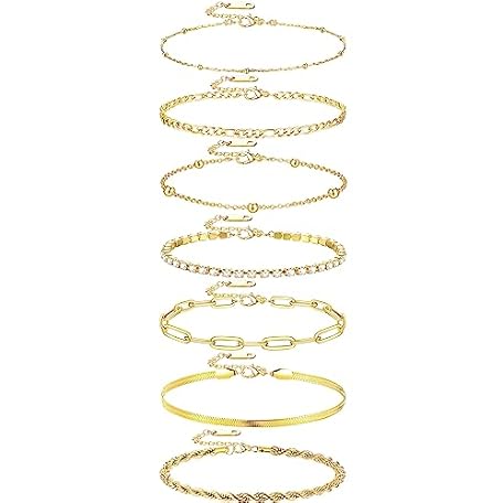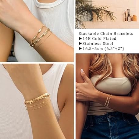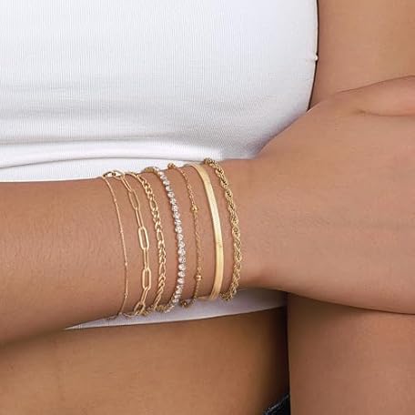 Sản phẩm KRFY 7Pcs Gold Silver Bracelets for Women 14K Plated Gold Chain Bracelets Set Stack Stainless Steel Womens Bracelet Adjustable Classic Paperclip ladies Bracelet Jewellery Set đang được bán với giá ưu đãi là $16.3173 tại nước Anh.