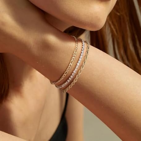 Thương hiệu KRFY là cái tên nổi tiếng được rất nhiều khách hàng trên thế giới chọn lựa. Với kiểu dáng đẹp mắt, sang trọng, sản phẩm KRFY 7Pcs Gold Silver Bracelets for Women 14K Plated Gold Chain Bracelets Set Stack Stainless Steel Womens Bracelet Adjustable Classic Paperclip ladies Bracelet Jewellery Set là sự lựa chọn hoàn hảo nếu bạn đang tìm mua một món cho riêng mình.