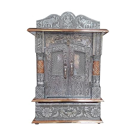 • KRISHA KRAFTS Pooja Mandir for home/Creations Wooden Oxidized puja Mandir Wall Mounted,Stand Home Decor Beautiful Temple for Home