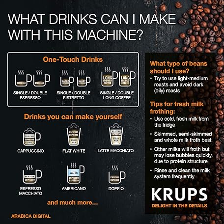 Thương hiệu KRUPS là cái tên nổi tiếng được rất nhiều khách hàng trên thế giới chọn lựa. Với kiểu dáng đẹp mắt, sang trọng, sản phẩm Krups Arabica Digital 1450 Watt, Carbon, Bean to Cup Machine là sự lựa chọn hoàn hảo nếu bạn đang tìm mua một món cho riêng mình.