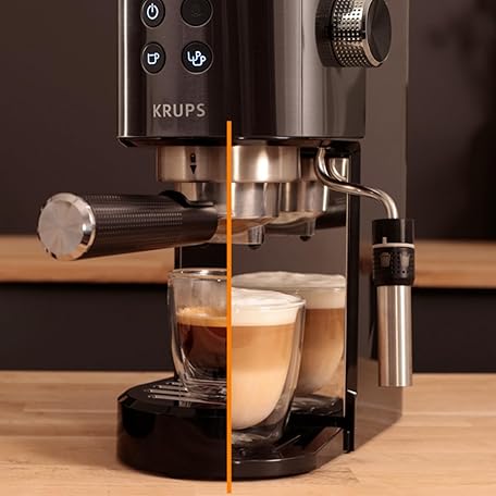 Thương hiệu KRUPS là cái tên nổi tiếng được rất nhiều khách hàng trên thế giới chọn lựa. Với kiểu dáng đẹp mắt, sang trọng, sản phẩm Krups Virtuoso+ Pump Espresso Machine – Compact Black Stainless-Steel Design, 15-Bar Pump for Rich Extraction, Auto Flow-Stop, 4-Button Interface & Steam Nozzle for Espresso & Cappuccino - XP444GG0 là sự lựa chọn hoàn hảo nếu bạn đang tìm mua một món cho riêng mình.