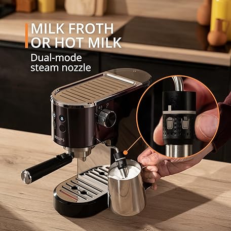 Thông tin sản phẩm Krups Virtuoso+ Pump Espresso Machine – Compact Black Stainless-Steel Design, 15-Bar Pump for Rich Extraction, Auto Flow-Stop, 4-Button Interface & Steam Nozzle for Espresso & Cappuccino - XP444GG0
