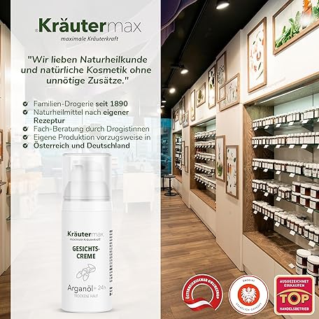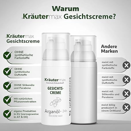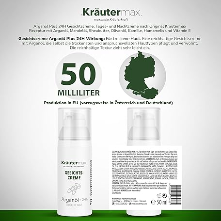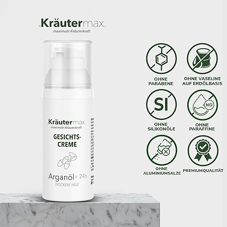 Sản phẩm Kräutermax. Kräutermax - Face cream with argan oil, for dry skin, natural cosmetics, day cream and night cream in a dispenser without perfume and unnecessary additives, 1 x 50 ml đang được bán với giá ưu đãi là $16.3609 tại nước Anh.