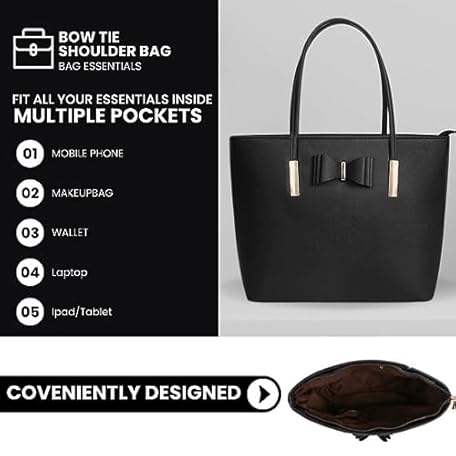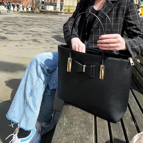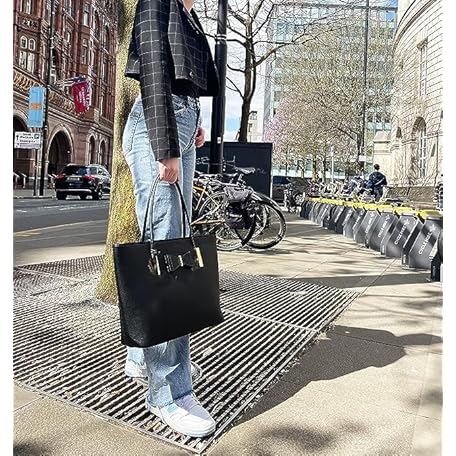 Sản phẩm kukubird Women's Top-Handle Black Large Tote Bag Handbag Simple Shoulder Bag with Zipper for School Work Leisure đang được bán với giá ưu đãi là $32.7327 tại nước Anh.