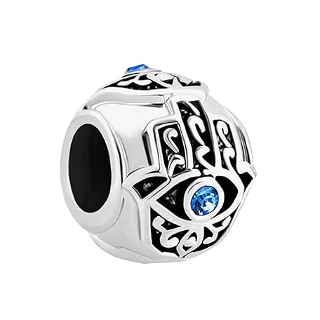• KunBead Jewelry Evil Eye Blue Crystal Hamsa Hand Bead Charms Compatible with Pandora Bracelets for Women