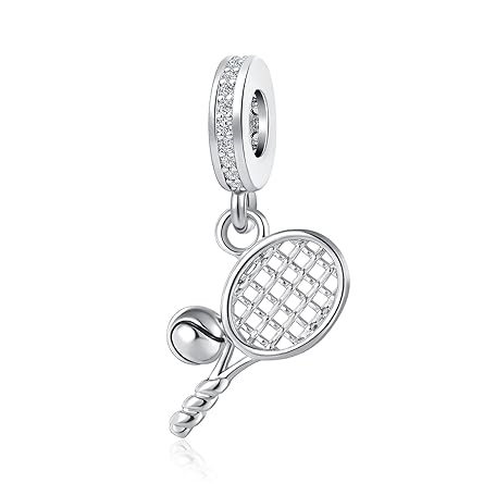 KunBead Jewelry Tennis Love Sports Dangle Charms Compatible with Pandora Bracelets Necklaces for Women