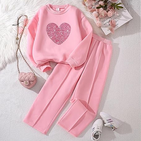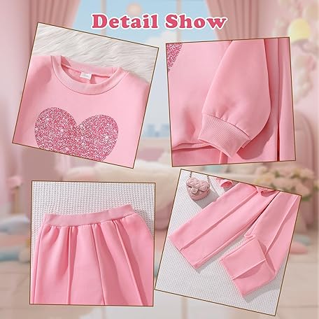 Sản phẩm Kunyeah 2Pcs Girl Sweatshirt Outfit Heart Print Pullover Tracksuit Toddler Fleece Long Sleeve Clothes Pant Set for Age 8-12Y đang được bán với giá ưu đãi là $25.2117 tại nước Anh.